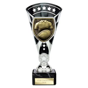 Cobra Star Trophy Cup Rugby Shirt and Ball Silver and Black