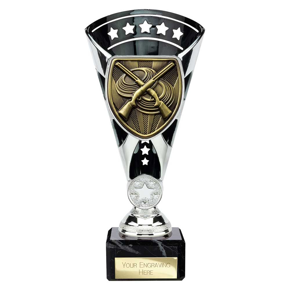 Celebrate success with the Cobra Star Trophy Cup Clay Pigeon Shooting Silver and Black.