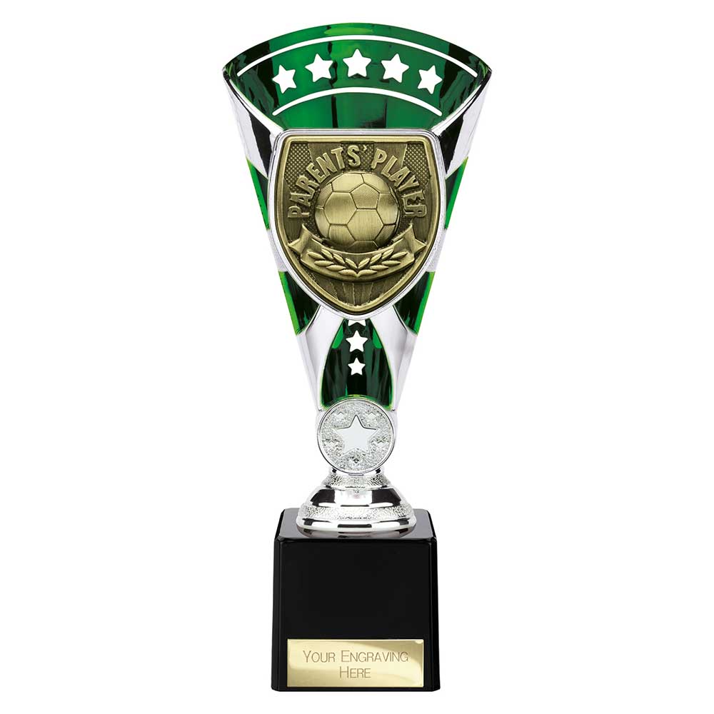 Celebrate success with the Cobra Star Trophy Cup Parents Player Green and Silver.