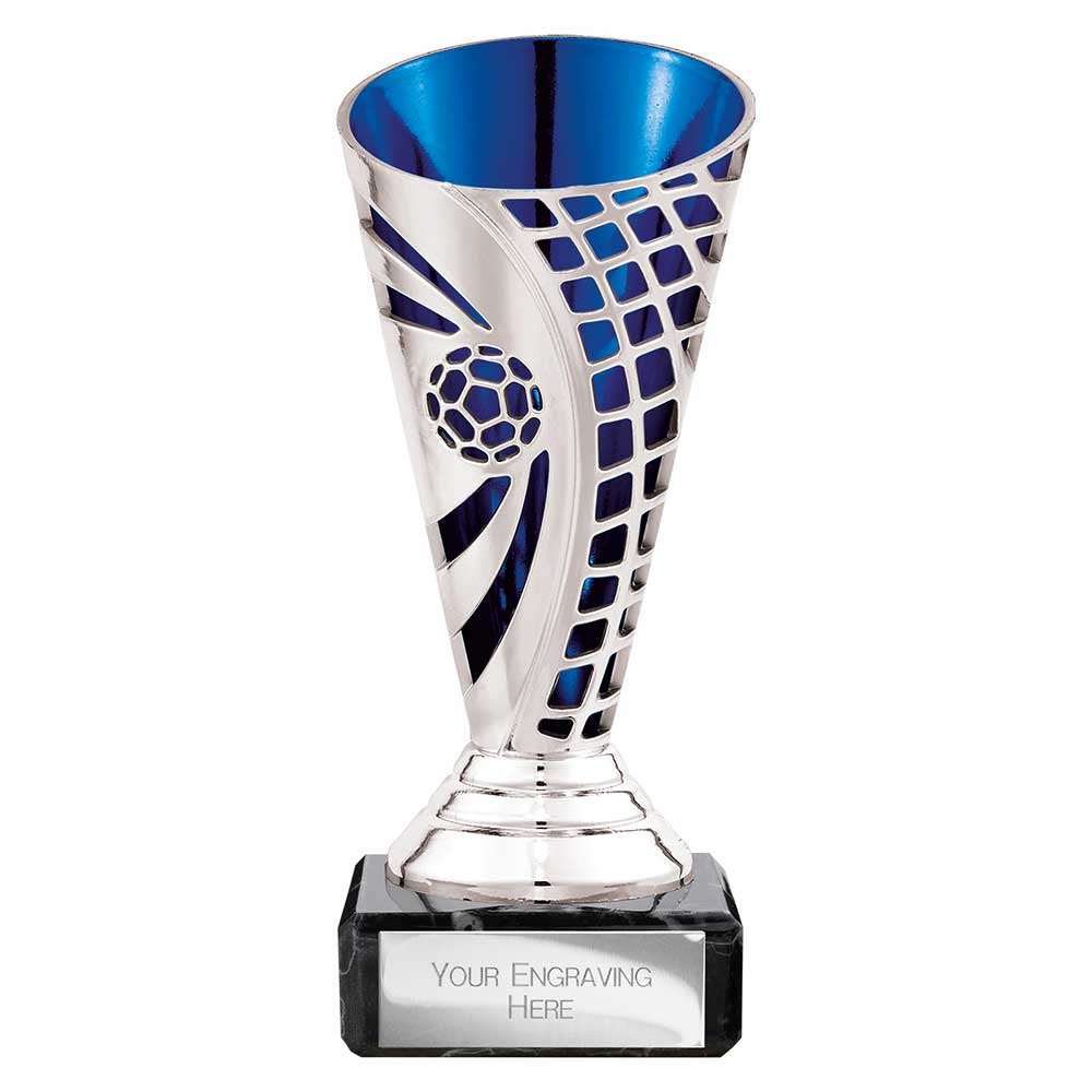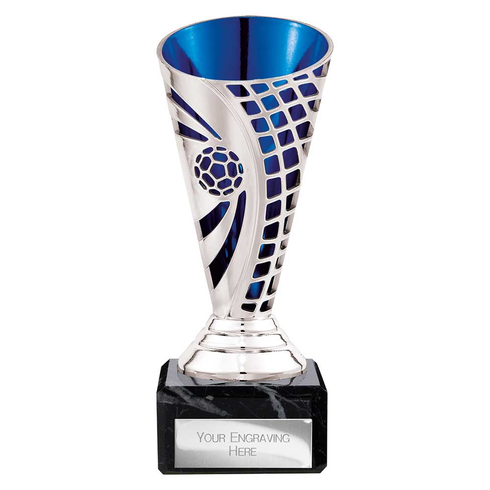 Celebrate success with the Defender Football Trophy Cup Blue and Silver.