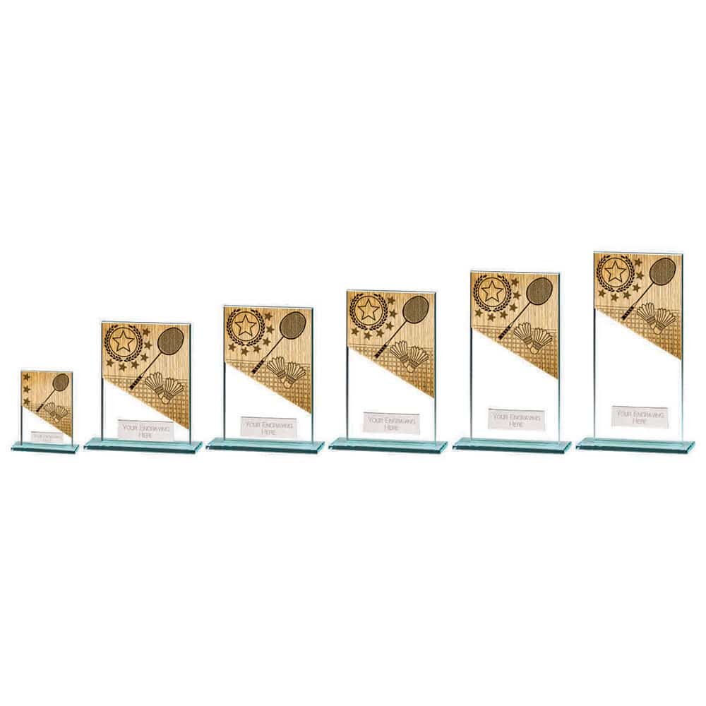 The Mustang Badminton Jade Glass Award is a stylish and contemporary way to celebrate badminton success. Featuring a striking gold wooden-effect panel with detailed racket, shuttlecock, and star accents, this award is mounted on a premium jade glass plaque for a clean and modern finish.