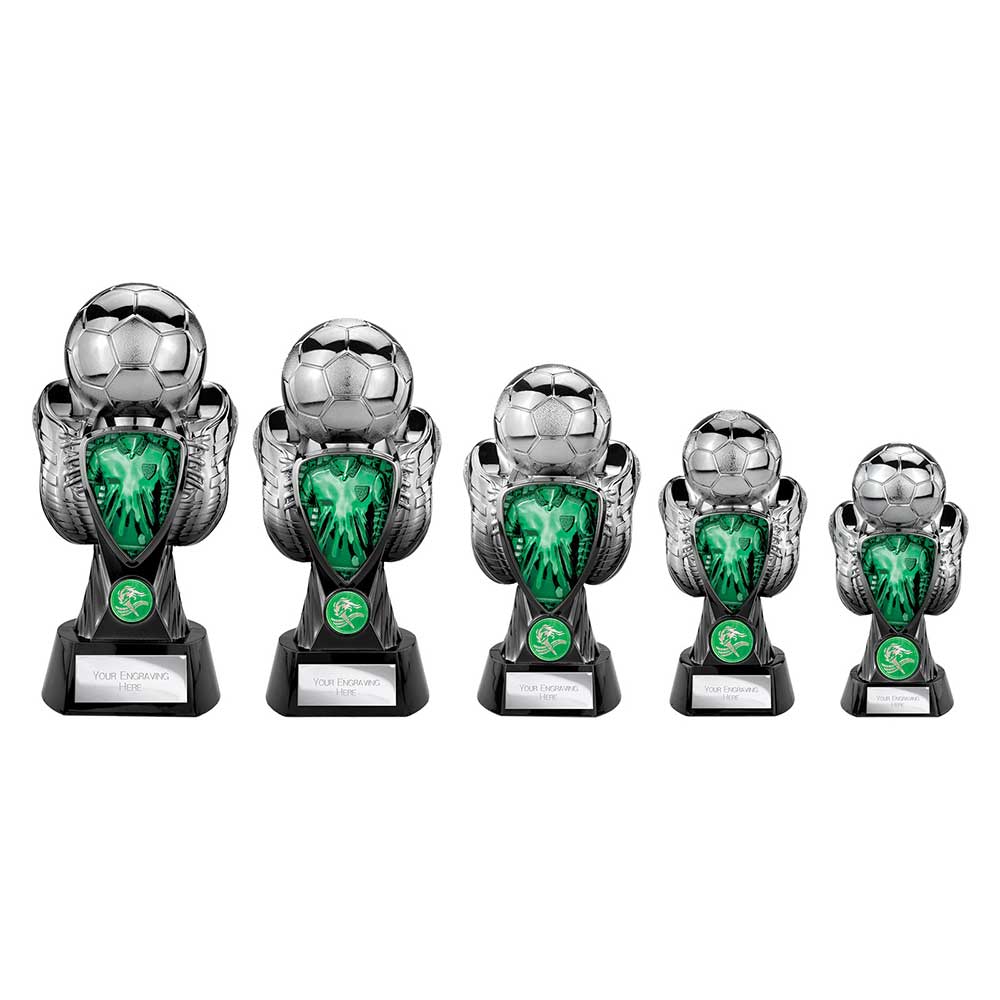 The Tournament Green Shirt Football Trophy in Black and Gunmetal is a bold and energetic award choice for celebrating football success. Available in a range of sizes, this striking design features a modern black and gunmetal finish paired with a vivid green shirt panel, creating a standout award suitable for players, teams, and special achievements.