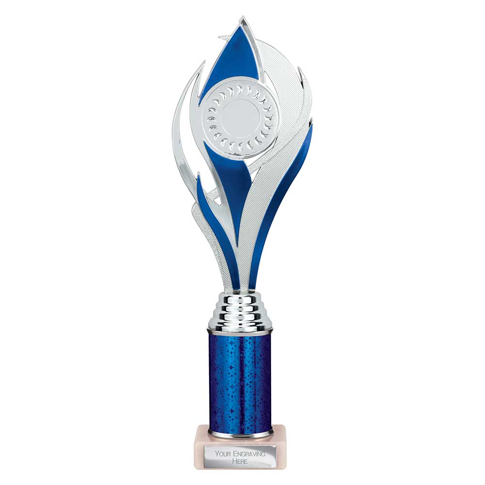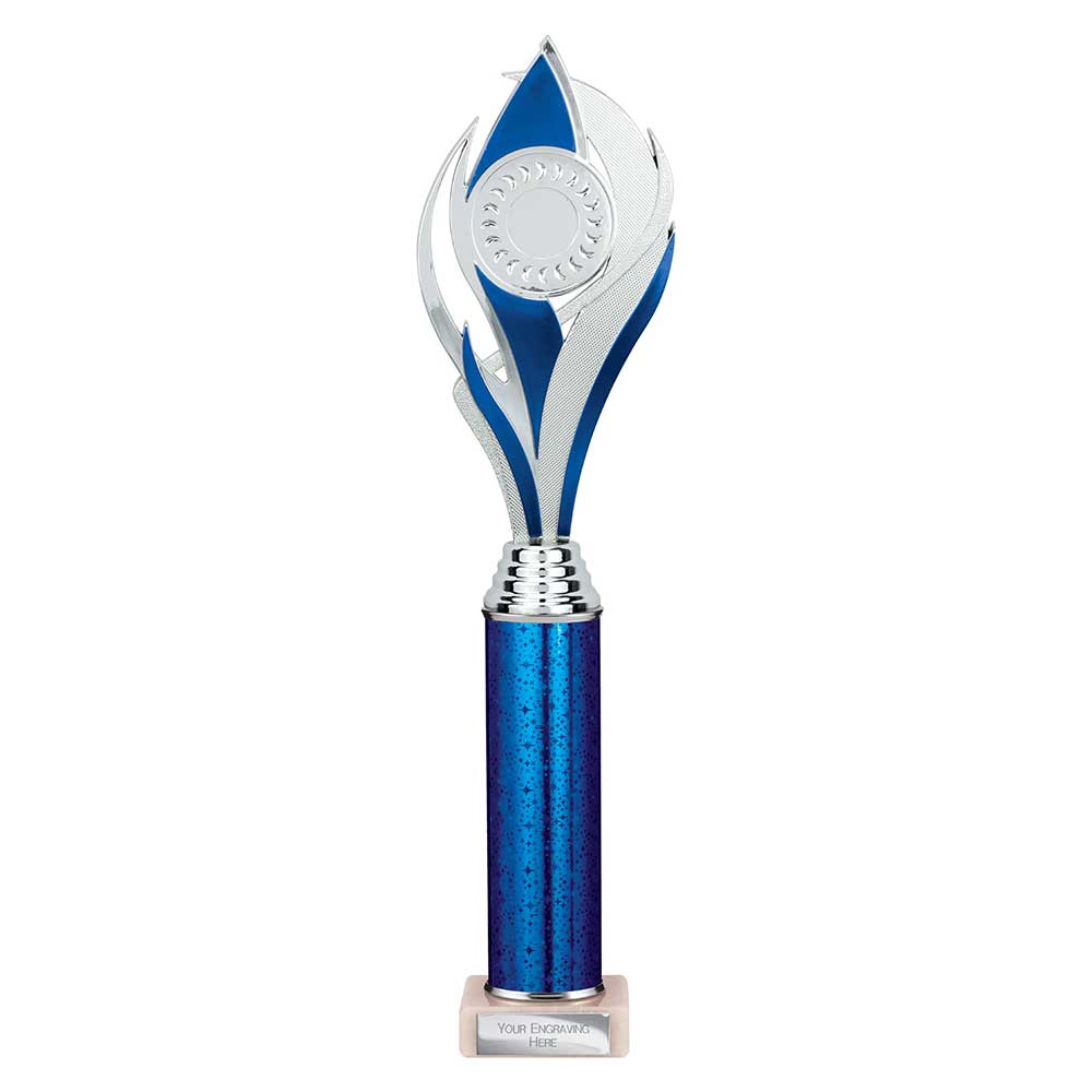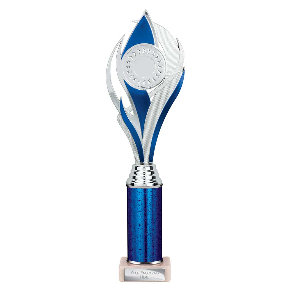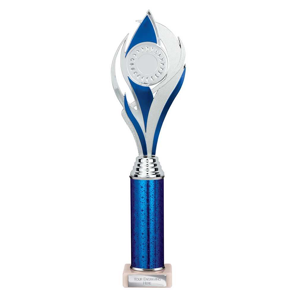 Purchase your Volcano Multi Award Tube Trophy Silver and Blue from Warrington Trophy World, one of the UK’s leading retailers of Trophies, Medals, and Awards, all available to order online 24 hours a day, 7 days a week.